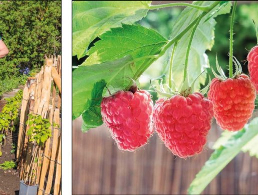 Der enthaltene kaliumbetonte Dünger trägt dazu bei, dass die Früchte einen aromatischeren Geschmack entwickeln. Sommer- und Herbsthimbeeren lassen sich gut in schmalen Reihen an einem Spalier ziehen. Es gibt aber auch späte Sorten, die gut in bis zu 75 Zentimeter breiten Beeten ohne Anbinden gedeihen. Zurückgeschnitten werden Himbeeren direkt nach der Ernte: Die alten, abgetragenen Ruten der Sommersorten werden entfernt, junge Triebe fürs kommende Jahr aufgebunden. Was viele nicht wissen: Auch Bienen lieben Himbeeren, deren Blüten für sie eine begehrte Necktarquelle sind.